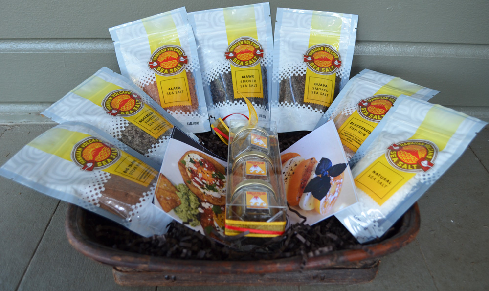 Treat yourself to a tasty assortment of sea salts that includes seven (7) 4.5 ounce packets of flavored sea salts and rubs including: natural smoked rosemary, alaea, kiawe smoked, guava smoked, blackened fish rub, and steak rub. You will also receive an additional three (3) 1.5 ounce jars of sea salt in natural, guava smoked and kiawe smoked. Be adventurous and try these locally-made sea salts in your favorite recipes today.